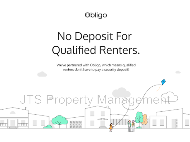 JTS Property Management is proud to offer no deposit move-ins to qualified renters through Obligo! We understand that moving costs can add up, so we want to extend financial flexibility to our residents. When you move in with us, you can skip paying a security deposit and keep the money to spend on what you want or save for what you need.